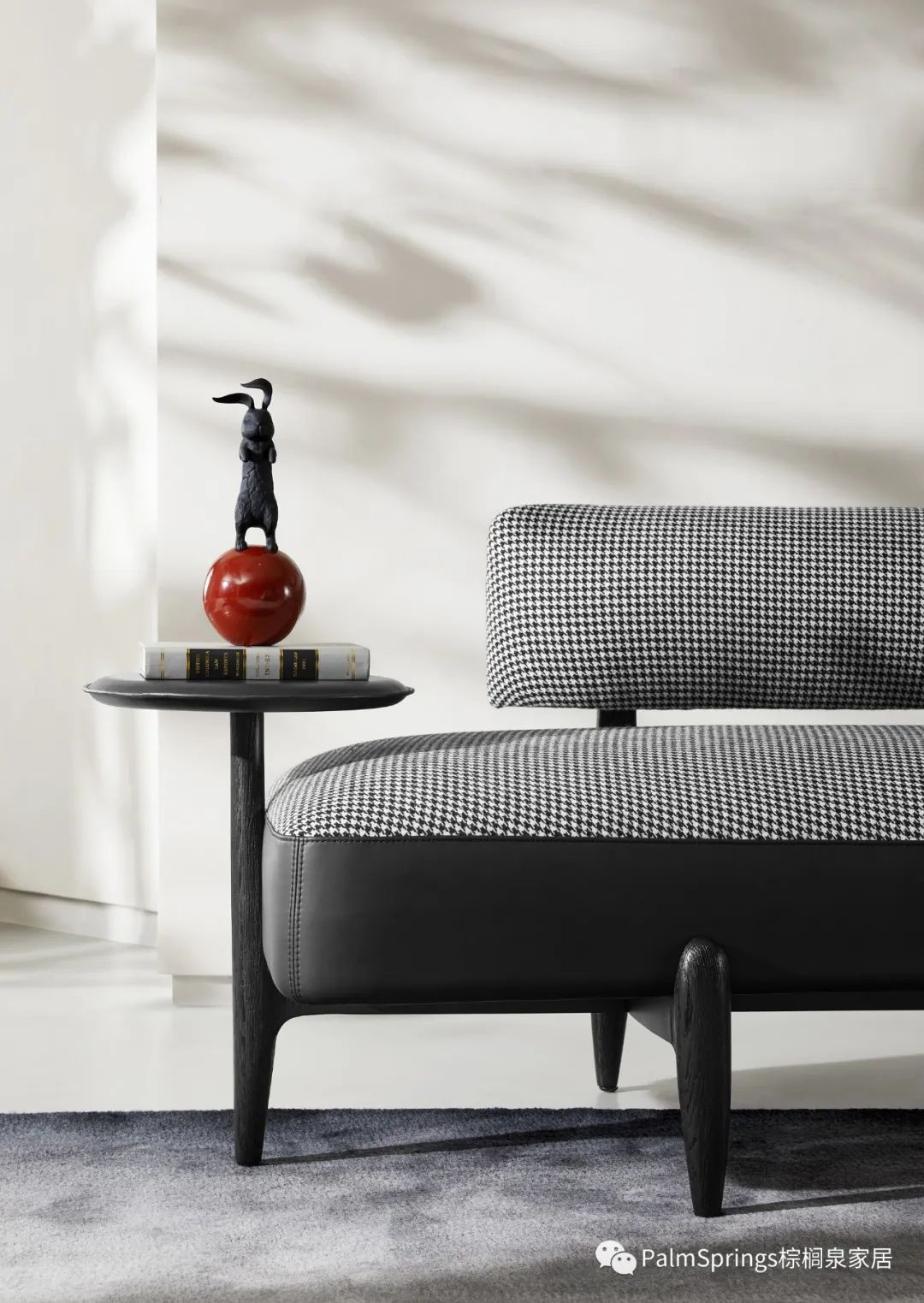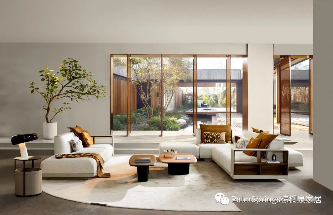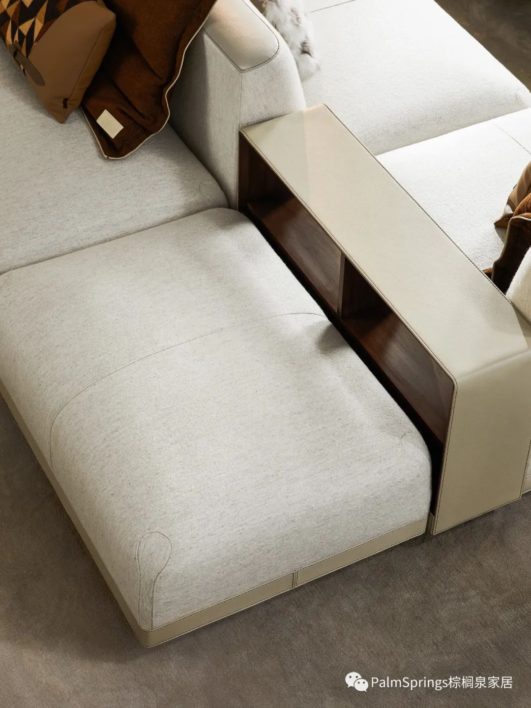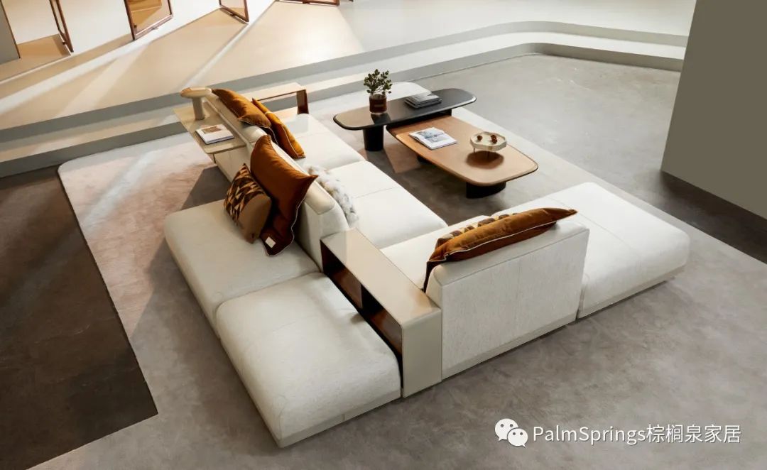 Eave组合沙发以木质为切入为居者打造了一个离尘不离城的自然之宅,质朴的木色中,时尚感透过不同的色阶呈现,也让光与木共筑的空间中。