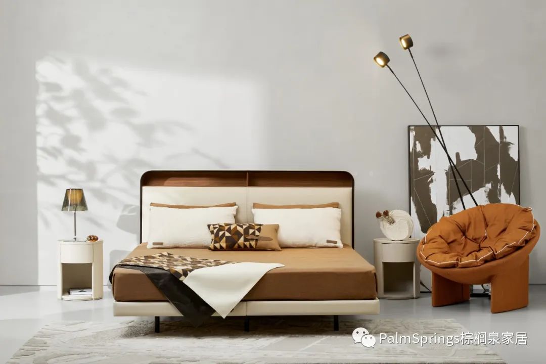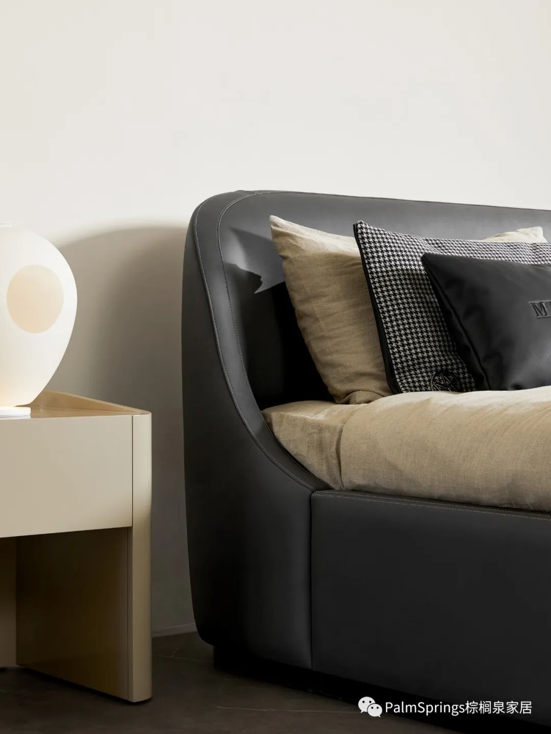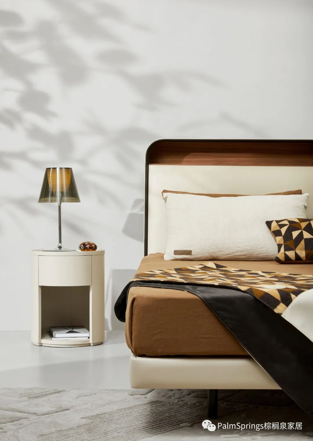 MAGISTER UT全新推出的意式极简床,以自然简约感为特点,整张床柔和的线条比例恰到好处。温柔的奶油色系与胡桃棕色完美结合,淡雅的中性配色,弧形设计从头到脚给人感觉平静且放松。