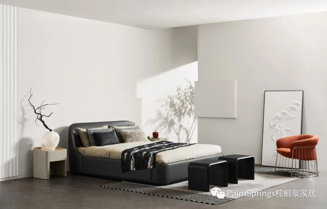 全新皮床用最简单的几何形式和最纯粹的色彩组成,饱满填充包裹,细腻透气,唤起对于中性色彩和简单色彩的美学关注,在色块的空间混合中达到一种简洁而又丰富的视觉效果。