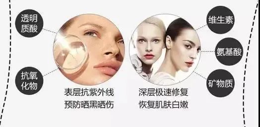 属性:抗晒、嫩白、补水,晒前预防,晒后修复