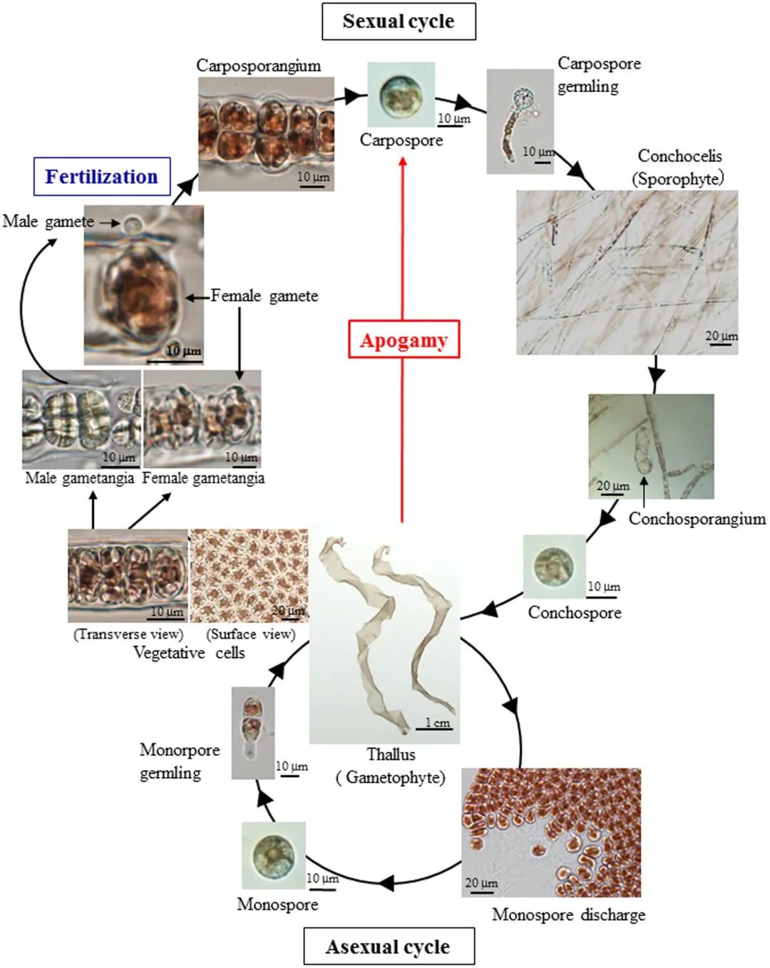 条斑紫菜的完整生活史。图片:Megumu Takahashi / frontiers in Plant Science(2017)