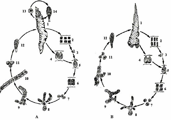 条斑紫菜(A)和坛紫菜(B)的生活史。图片:fao.org