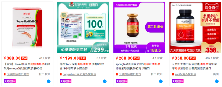看看某宝上磷虾油的价格