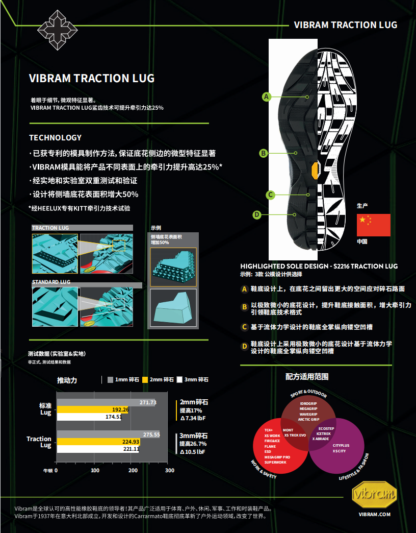 一是引入了Vibram最新的Traction Lug鲨齿技术;