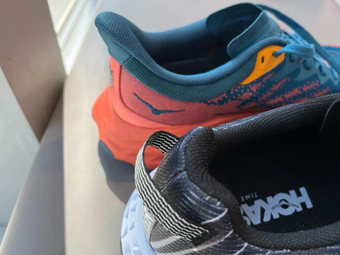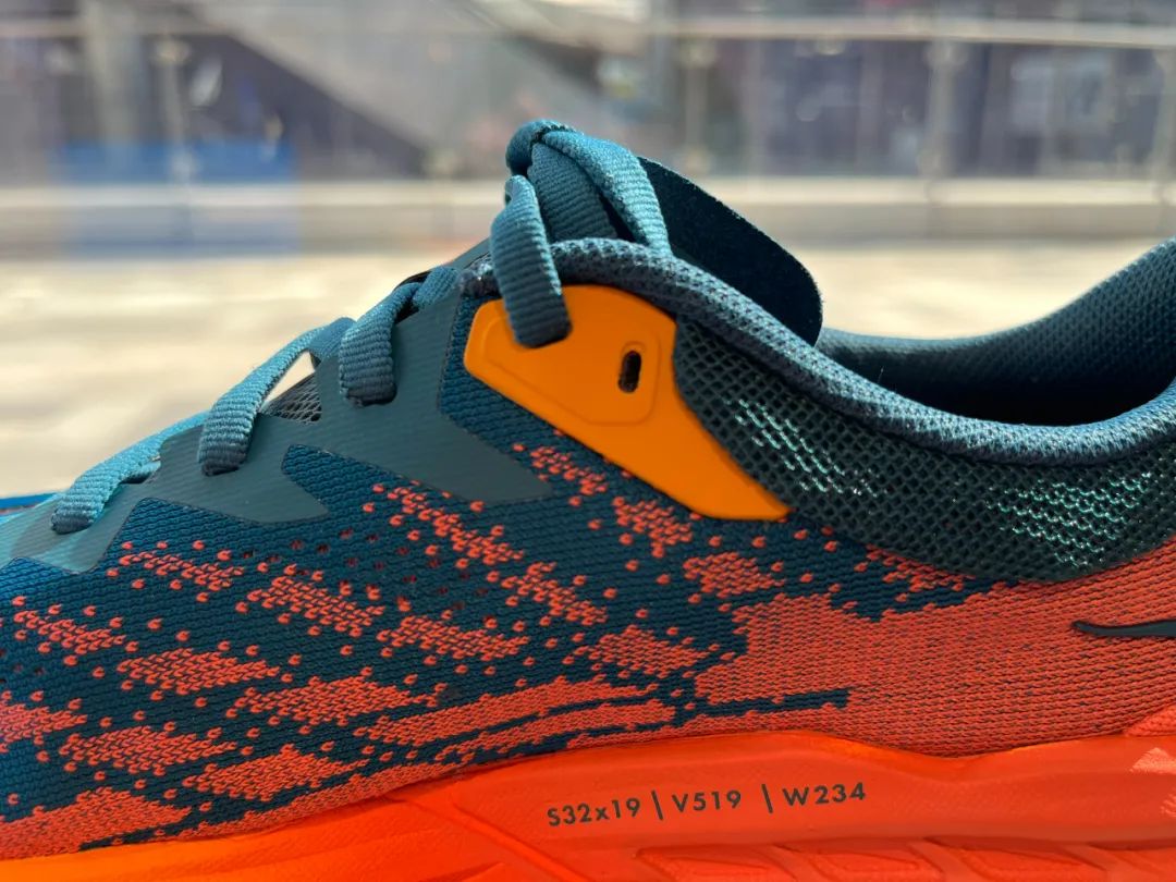 这是HOKA首次将后跟拉襻设计应用到越野鞋款里。