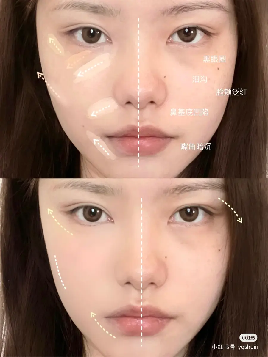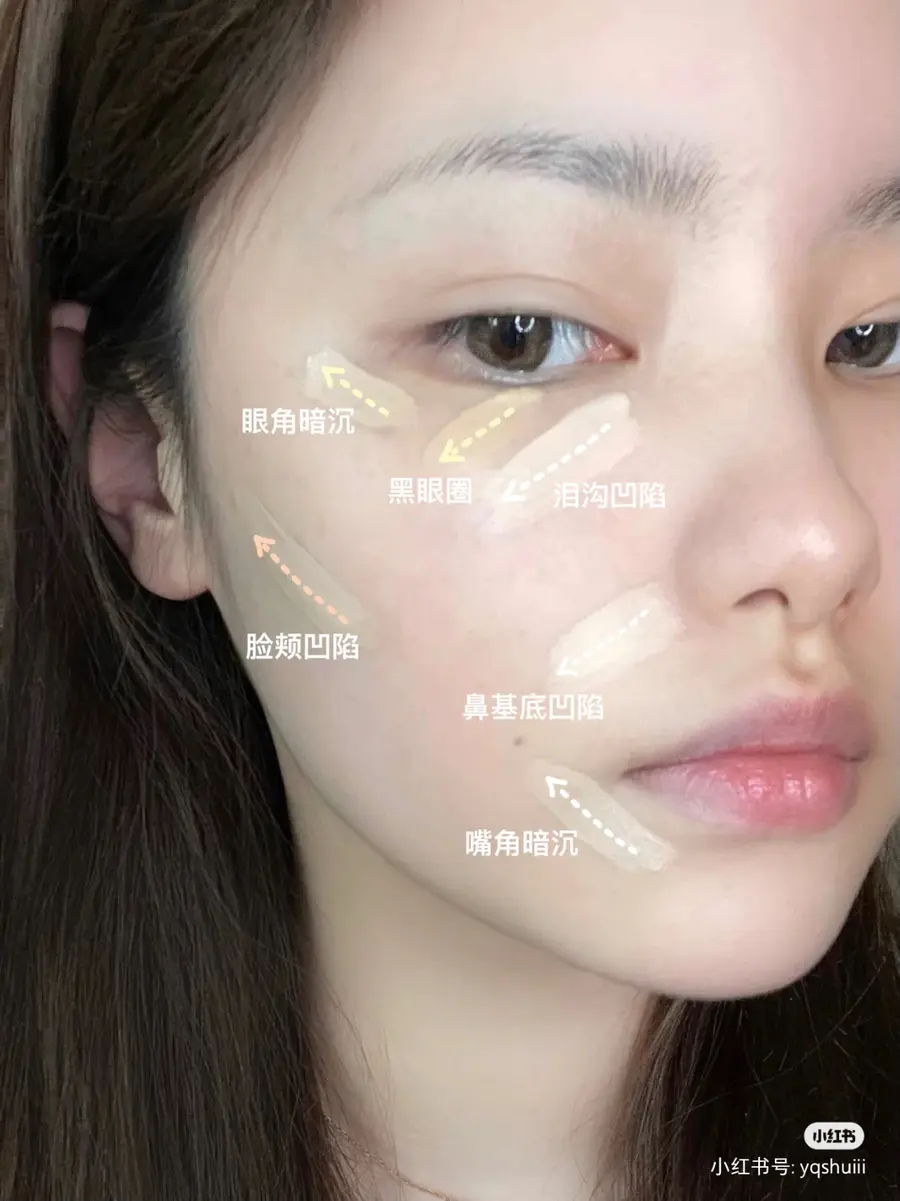 如果有眼尾暗沉,同理只遮眼尾,不要大面积厚涂