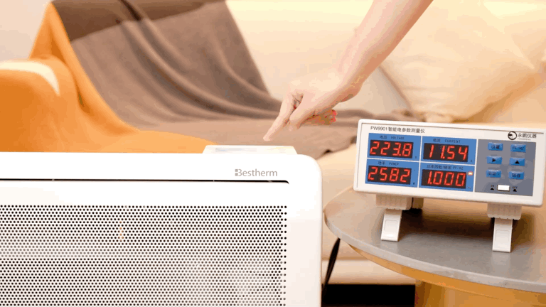 △百斯腾取暖器再工作过程中,根据环境温度不断变换加热功率的测试