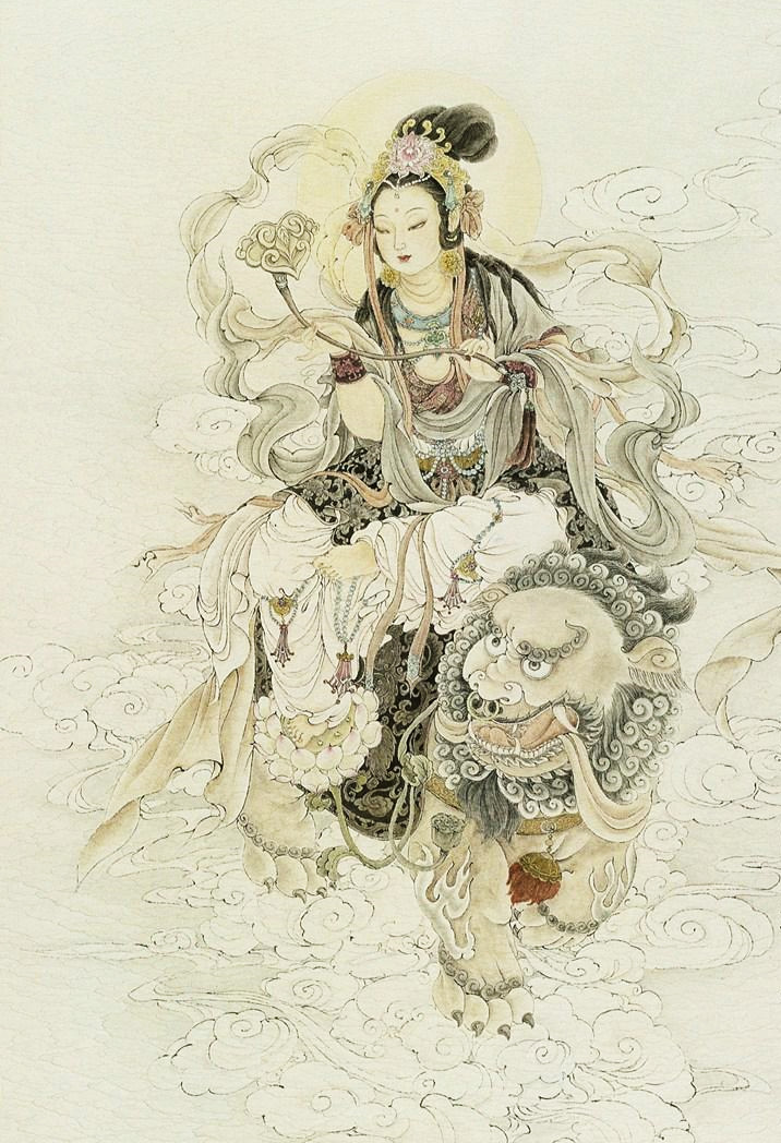 在佛教经典文献和造像中,也经常出现狮子的形象——“智慧佛”文殊菩萨的坐骑就是狮子。由此更增添了狮子作为瑞兽的色彩。