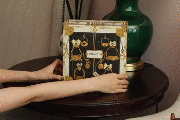 金色+藏蓝外包装盒低调大方,打开盖子里面更美~银色亮晶晶的小飞碟躺在黑色天鹅绒上,看包装说它价值1000块也不夸张吧!▼