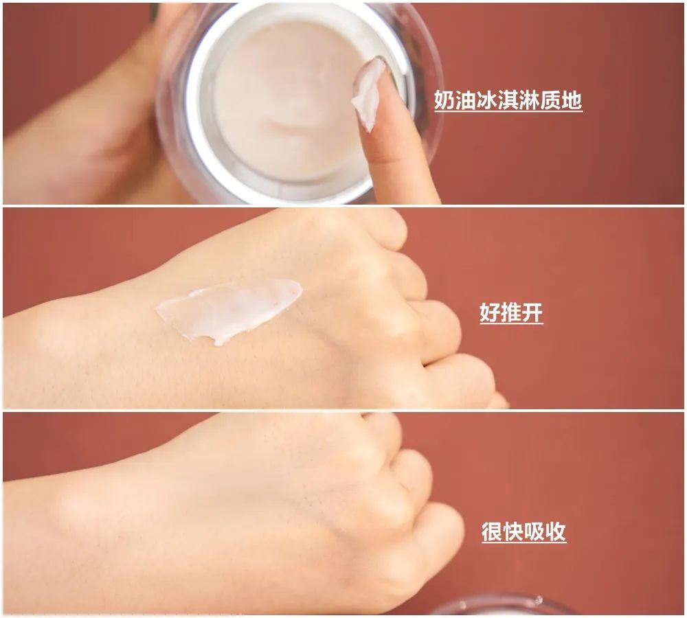 用起来肤感也很舒服。瓶子里的眼霜压得特别实在,摸起来像黄油,用手指的温度轻轻蹭几圈就立刻融化了,好神奇!▼