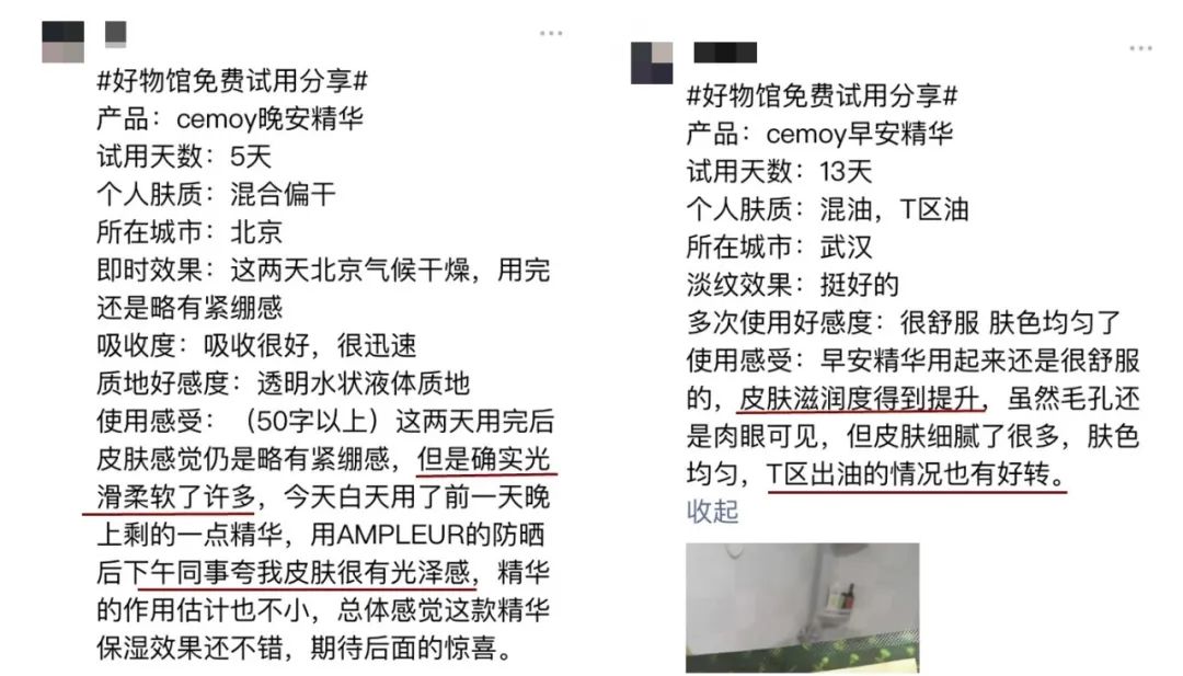 正在打卡的贝壳们最短用了一周、最长用了13天。大家都说感觉到皮肤变得细腻、有光泽,脸也不容易出油了。油皮和混油皮后续不用再涂别的,干皮再叠一层面霜会更好~▼