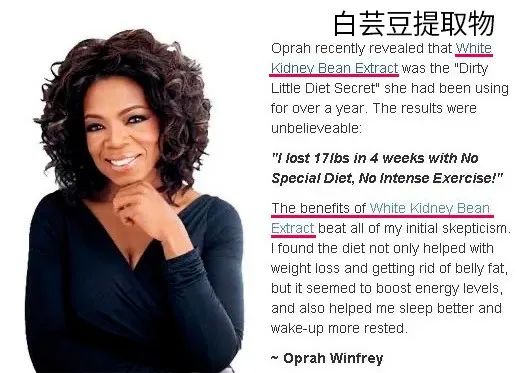 ▲奥普拉·温弗瑞,吃过一年多的白芸豆提取物