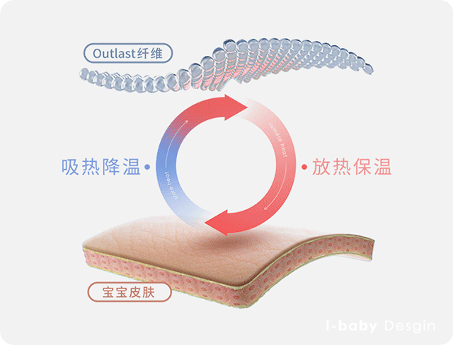它采用专为美国宇航局(NASA)太空服研发的相变材料outlast,根据宝宝体表温度进行动态调节,始终处于28-32℃的舒适睡眠温度区间,不会因为上下半夜的温差而忽冷忽热,让宝宝安睡一整晚,妈妈也能好好睡个美容觉,简直送到老母亲心坎里了。