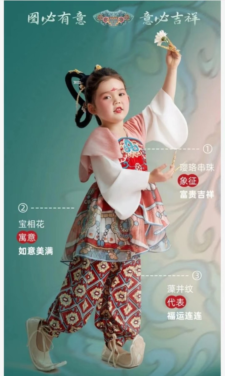 迎接万物复苏的出游季,年衣为女宝准备了一套敦煌主题的汉服套装,为小仙女打造春日新中式造型,兼具美感和舒适的同时寓意非凡。