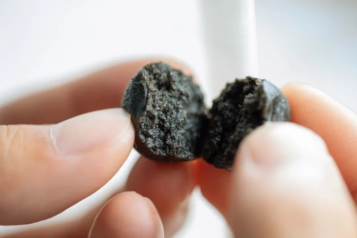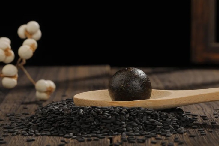 九蒸九晒之后经过炒香、磨粉、炼蜜等环节。将芝麻处理成微粉,用白蜜调和,做成约10克的蜜球。