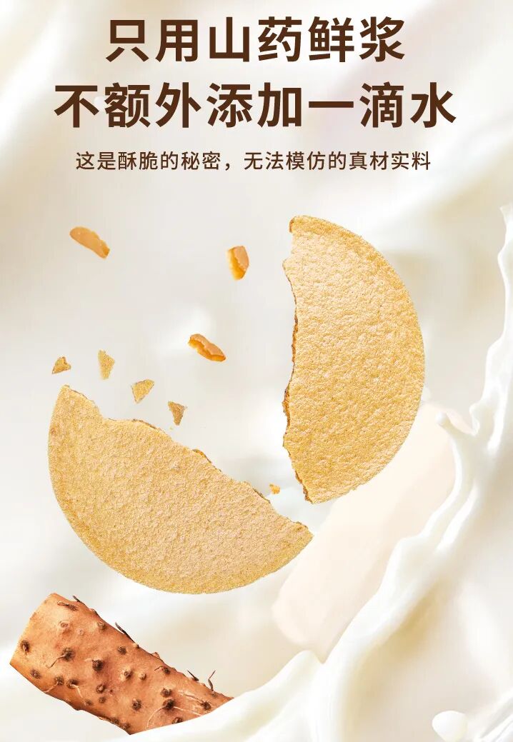 这款薄饼选用的正是河南焦作温县垆土铁棍山药制作,且山药鲜浆含量不少于70%,浓缩满满的营养与精华。