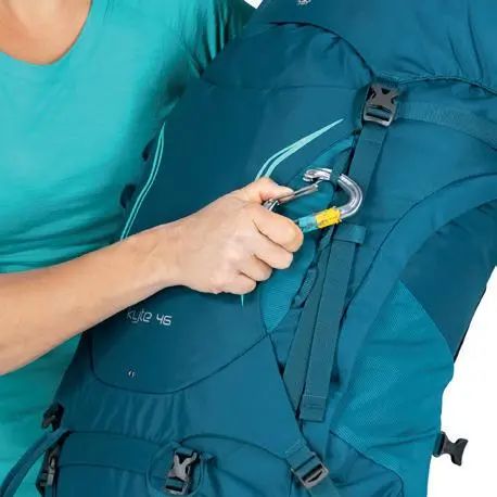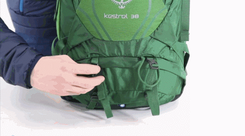 ⒒登山杖挂载(Stow-On-Go)-OSPREY的专利设计,可以随时挂取登山杖。