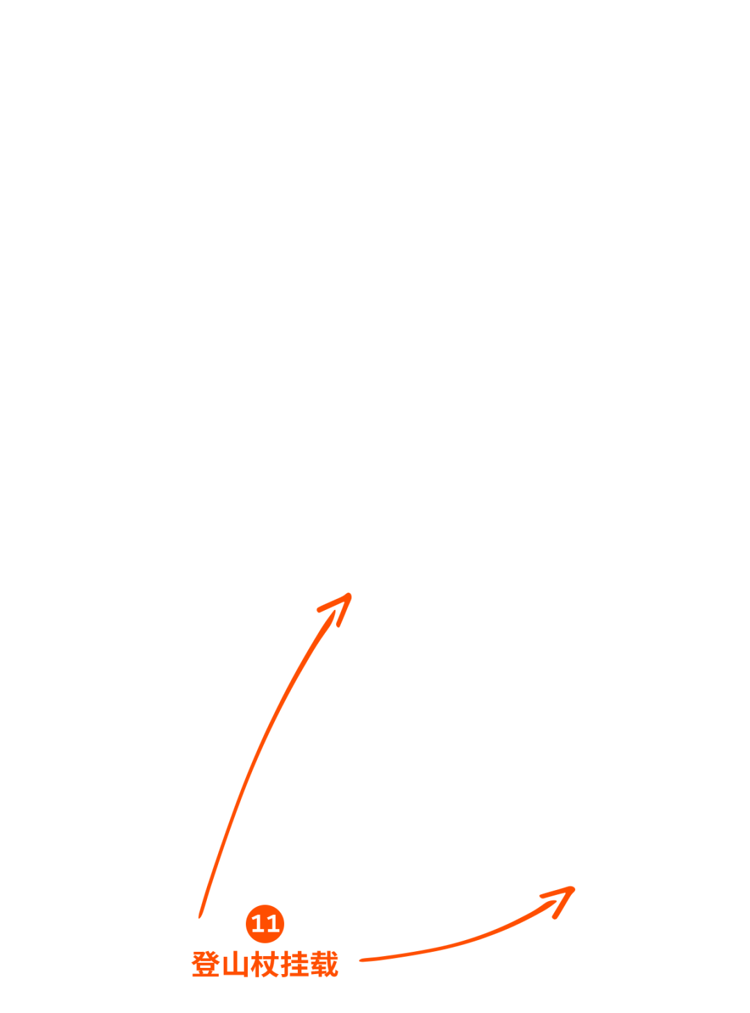 但有时需要用到双手,比如进食或需要借助双手爬过大石头,这时,登山杖拿在手上都稍显不便,就会需要用到登山杖随行系统。