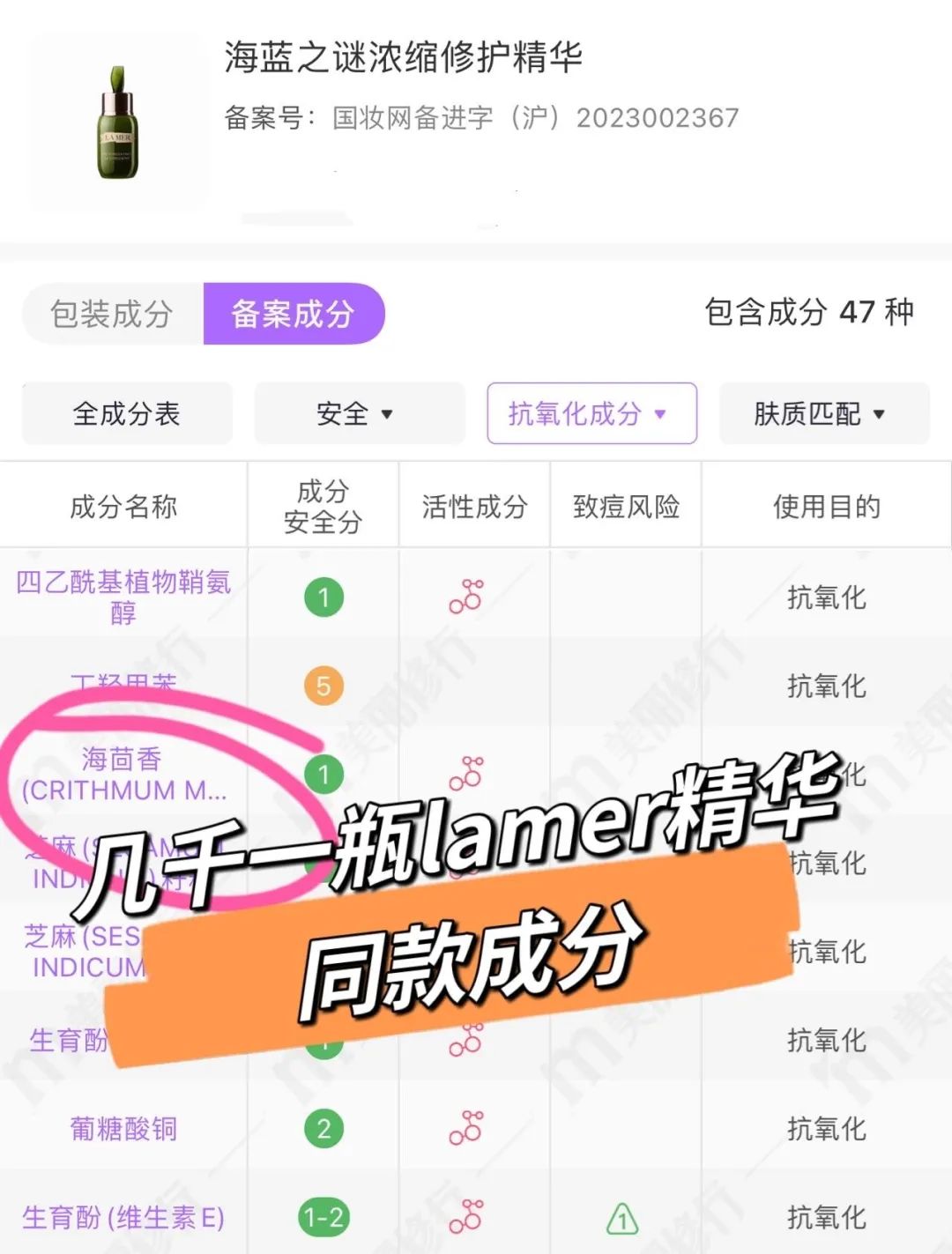 添加了lam*r同款海茴香提取物、上万1kg的鱼子酱、b5、珍珠……舒缓、维稳、祛黄一把手!