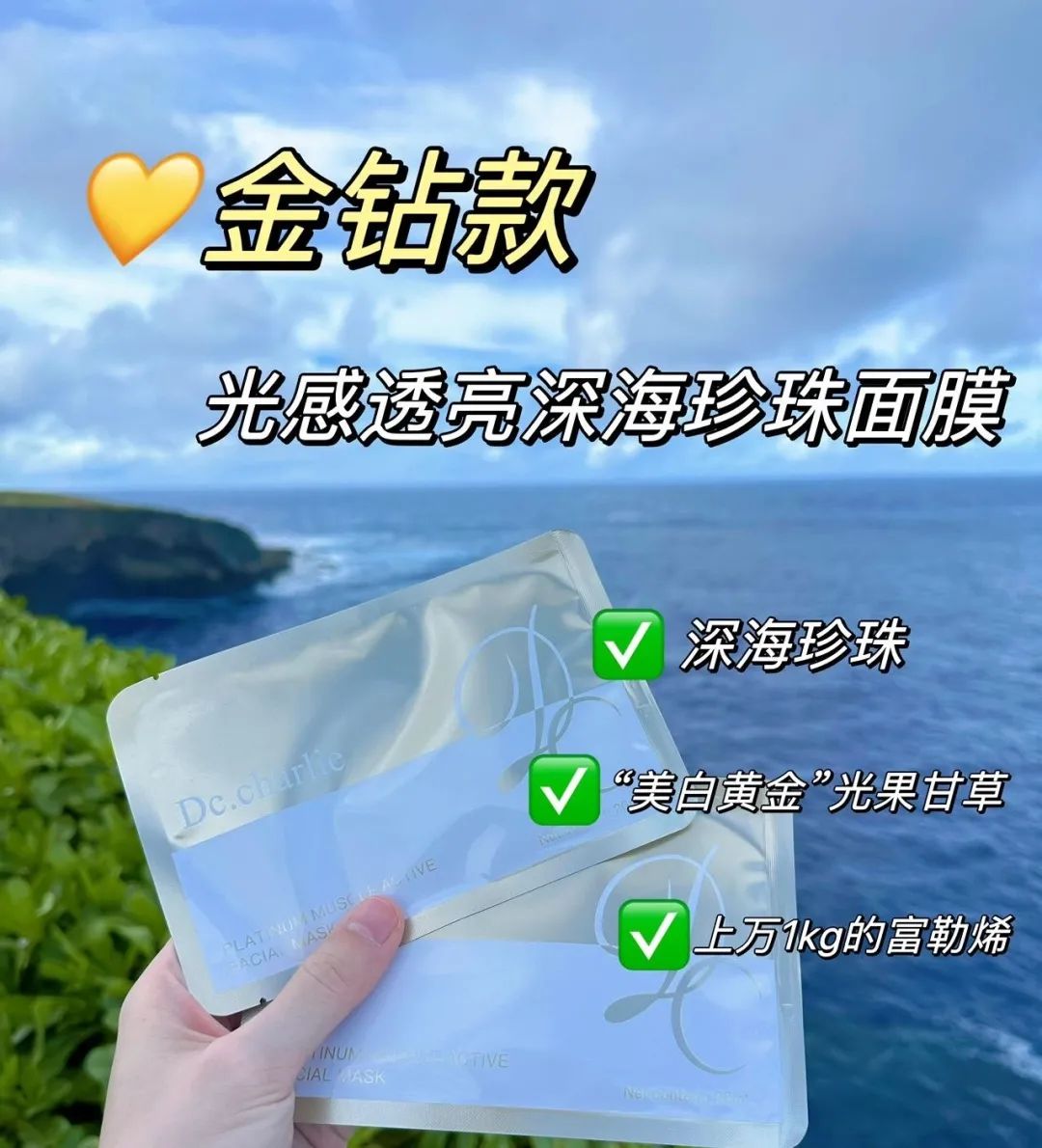 金钻款:深海珍珠亮白面膜:多通路焕白,植萃舒缓,内源性抑黑!