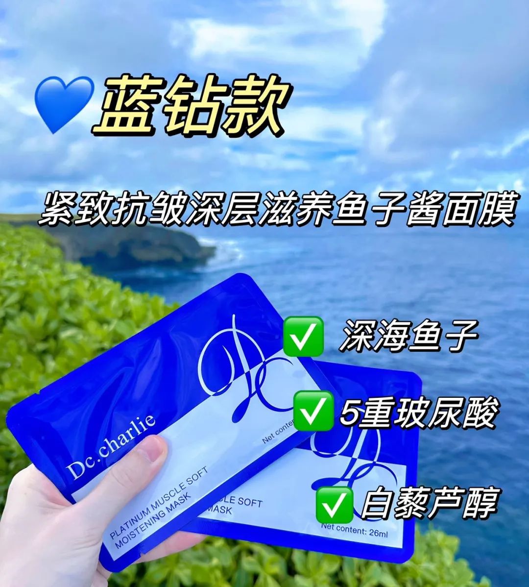 蓝钻款:深海鱼子面膜:5重玻尿酸+鱼子紧致,密集补蛋白质,脸蛋砰起来!