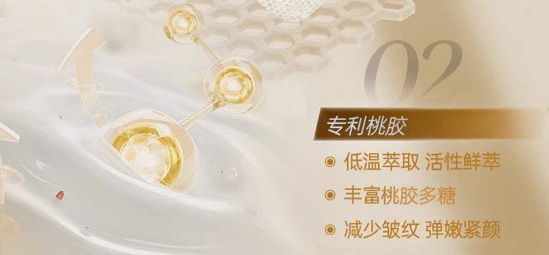 桃胶富含90%以上的桃胶多糖,一方面可以很好地锁住皮肤水分,从里面把皮肤撑起来,从而保持水润光泽感;另一方面,能抗过氧化,减缓肌肤衰老,减少纹路产生,皮肤就更显弹嫩紧~致~