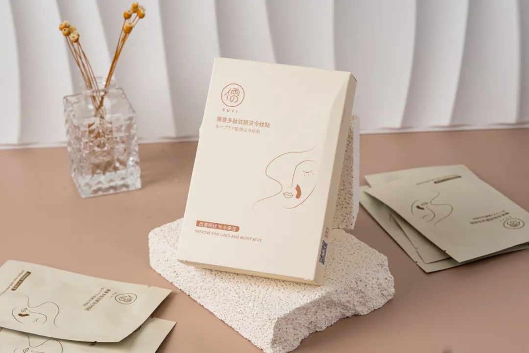 这款法令纹贴内含4大専利成分——2种多肽(専利号:ZL 2013 1 0412973.1)、人源化重组胶原蛋白(専利号:ZL 2010 1 0527766.7)、桃胶(専利号:ZL 2018 1 0443551.3),可以对动态纹、静态纹进行逐个“突破”,并减少新的法令纹产生。