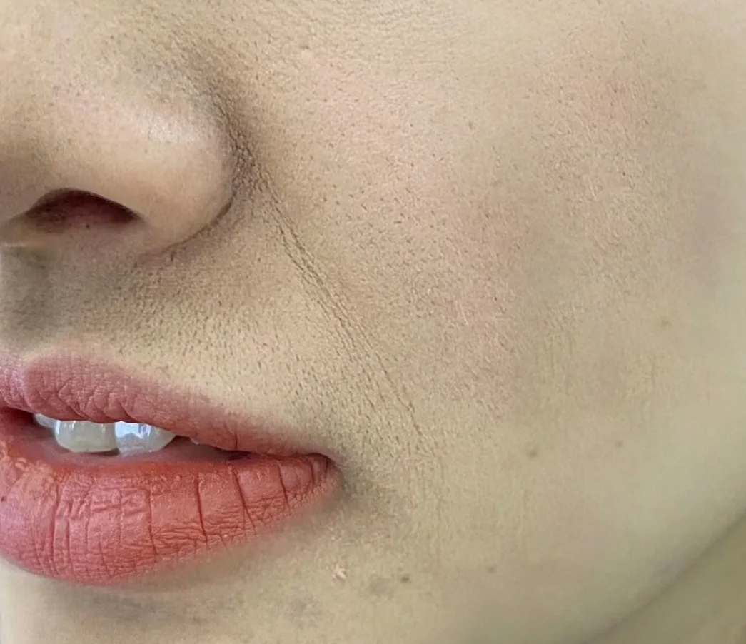更尴尬的是:化妆也遮不住,还卡粉积线,显老显脏。
