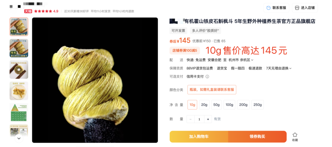 市场上多数药材以斤论价,而霍山铁皮石斛却以克计价,就拿枫斗来说,其市场价每克高达8-30元。