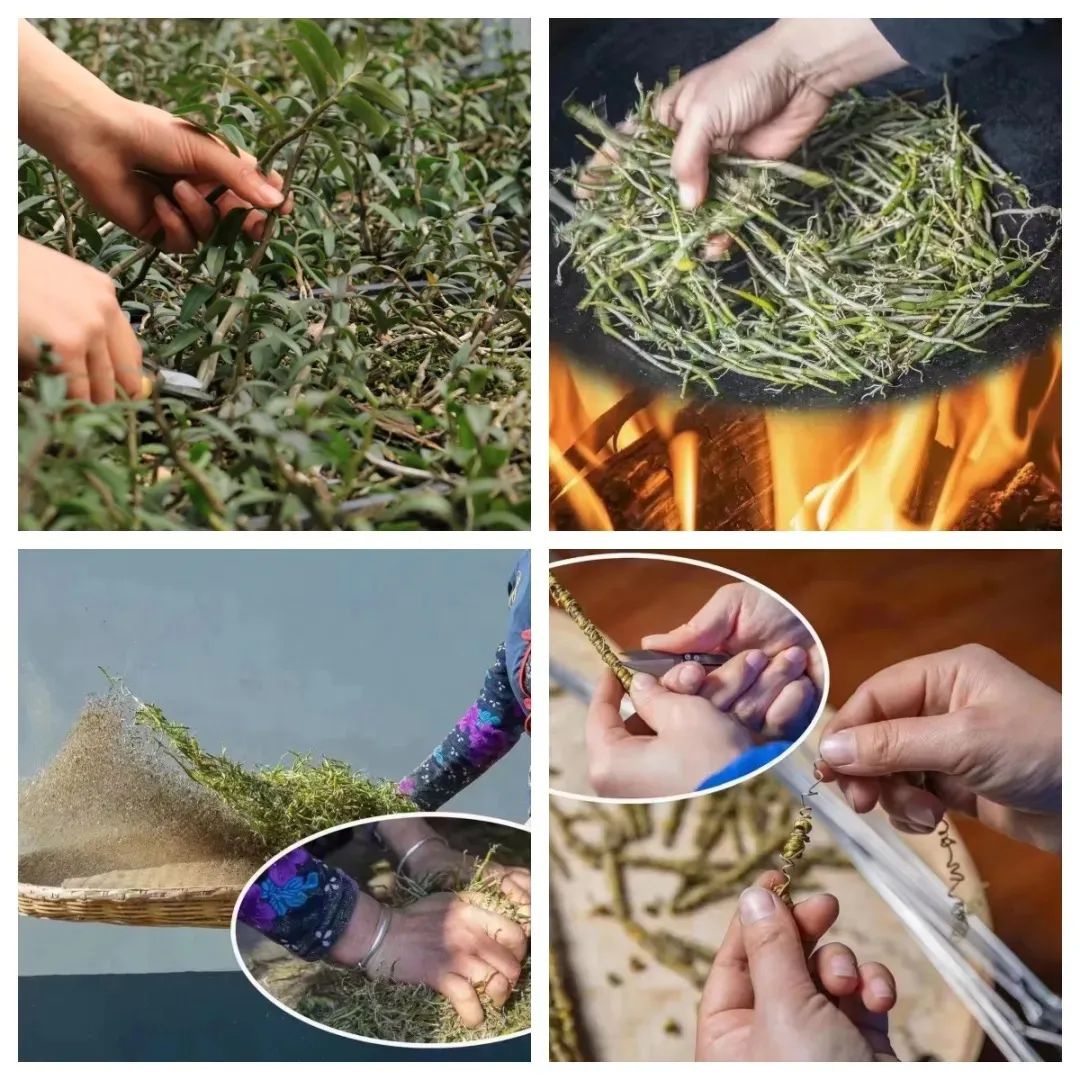 新鲜的石斛采摘回来,匠人们严格按照非遗传承技艺进行制作。