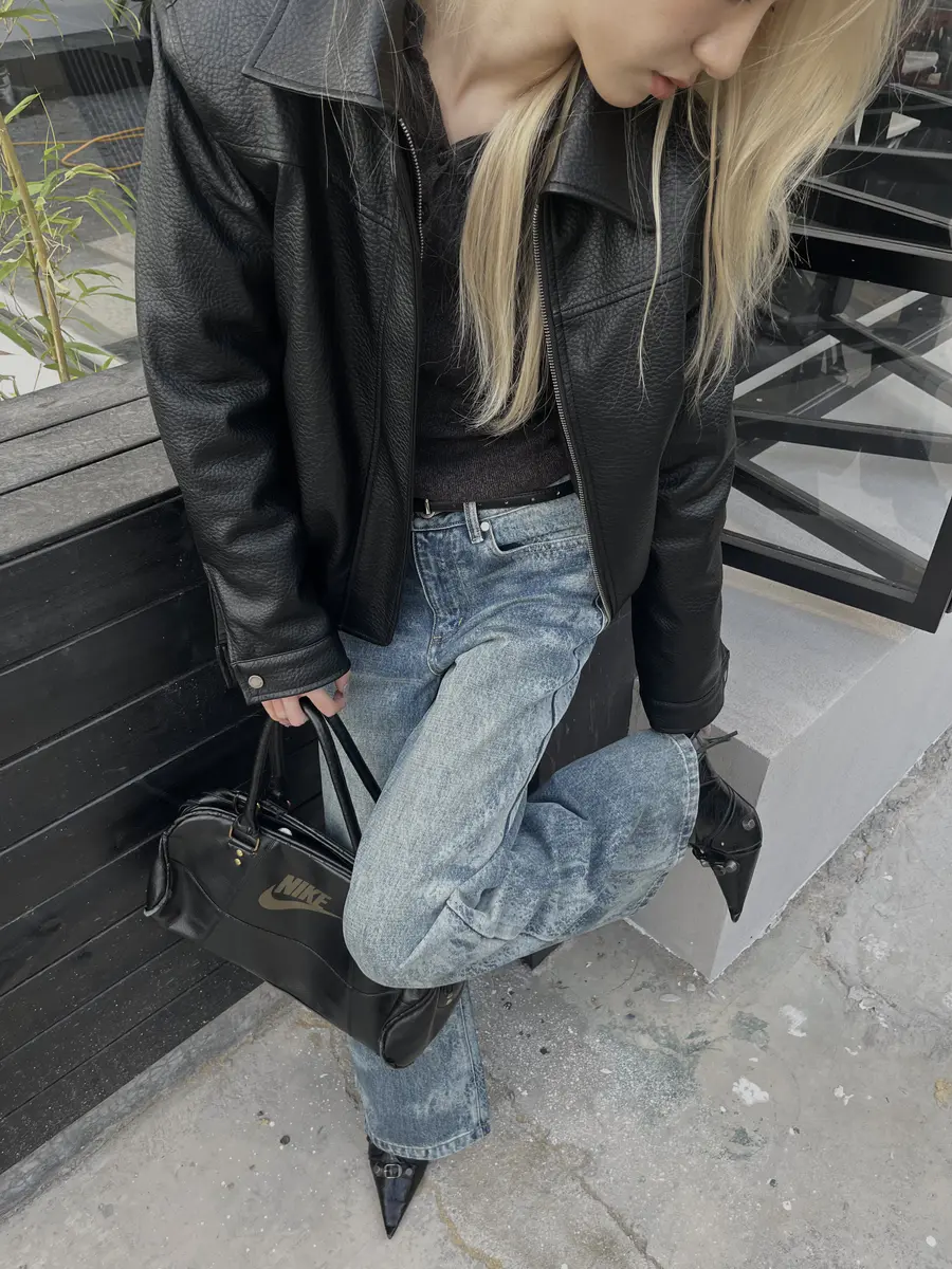 新品上身 | 荔枝纹夹克复古穿搭分享💗
