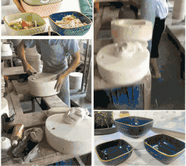 制作上非常讲究!用高压具模压制成形后,风干半天到一天后进行试釉处理,试釉进入窑后1260℃高温烧制成型,然后由工人画金,再进入烤花窑烤成成品。