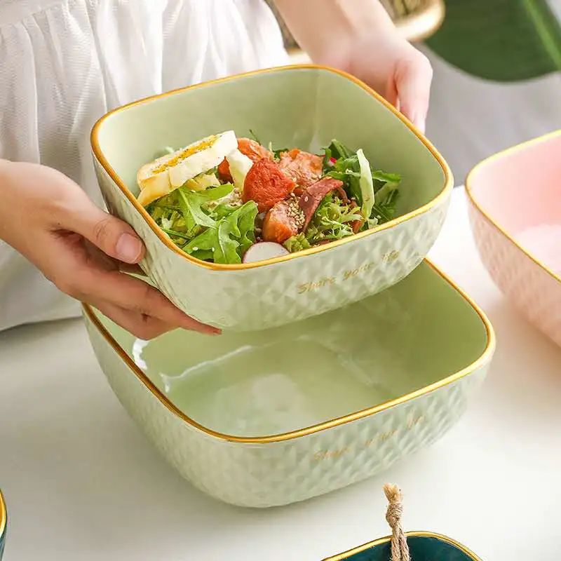而这款沙拉碗采用了优质瓷泥烧制而成,瓷质厚实,不仅烧出来的颜色均匀好看,更能够有效隔热不易烫手。
