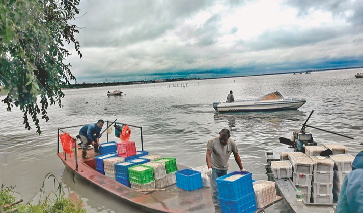 从早上4点多入湖,一直到10点多,蒋祥元总共起了10多网,才收获了30多斤的银鱼。每拉起一网,他赶紧开始分选,剔除水草和杂鱼后,只剩下少许晶莹剔透的银鱼。蒋祥元无奈地说:“网里大多是梅鲚鱼,银鱼少得可怜,相比去年少了近一半。”