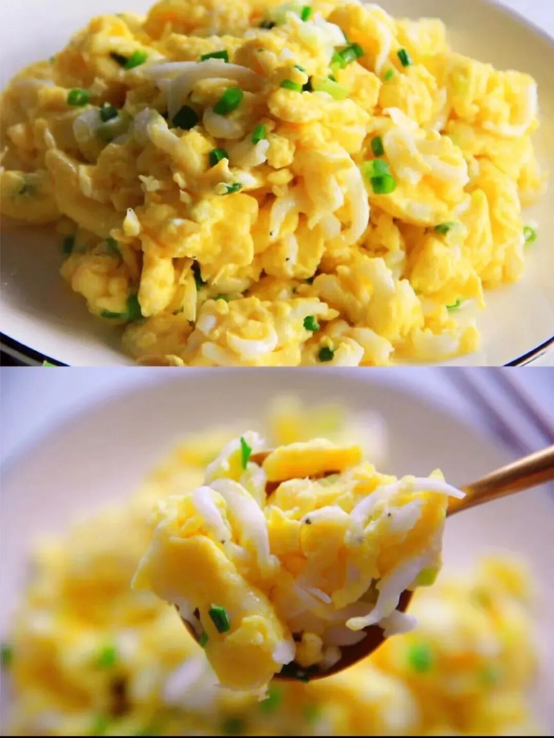做法:将银鱼洗净去杂质,沥干水发。鸡蛋磕入碗内,加精盐、料酒、味精搅打均匀,再倒入银鱼、葱花搅匀待用。锅洗净置中火上烧热,加入色拉油60克,烧至四成热时,倒入搅匀的银鱼蛋液,再用铁勺或铲翻炒,边翻边在锅边加色拉油,炒至蛋液发胀、凝固,再加入色拉油炒至松散时,淋麻油,出锅装碟即成。
