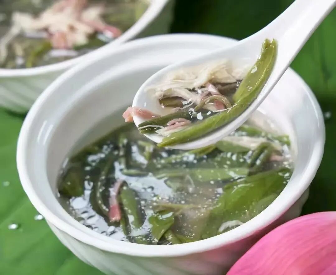 做法:莼菜洗净后,在沸水锅内氽一下捞出,沥净水分;银鱼拣净杂质,洗净沥水待用。锅洗净置旺火上,加入鲜汤烧沸,然后放入银鱼、料酒、精盐烧沸后,撇去浮沫,再放入莼菜、味精,烧沸后用湿淀粉勾芡,成羹状,淋入麻油,放入白胡椒粉,盛入汤碗内即成。