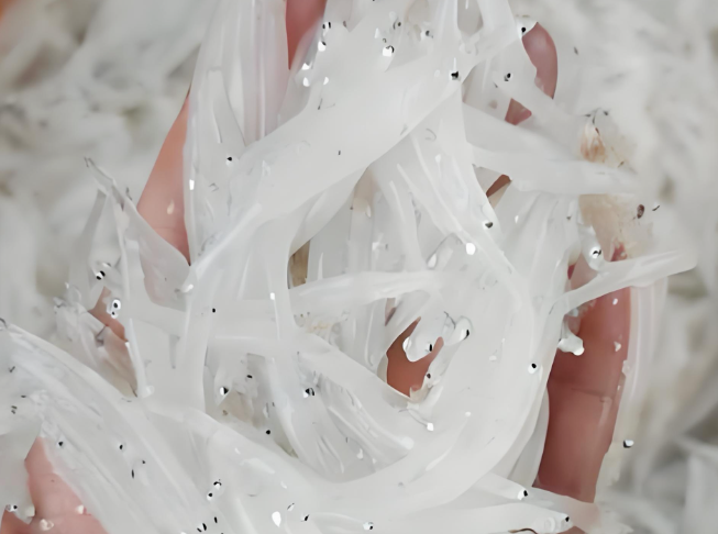 银鱼,尖喙黑目,体长略圆,形如玉簪,光滑透明,色泽似白银,肉质肥嫩鲜美,白洁细腻。《震泽县志》称“长不过三寸,色明莹如银,细骨无麟,煮食味甚鲜美,为脍可以致远,鱼中珍品也”。
