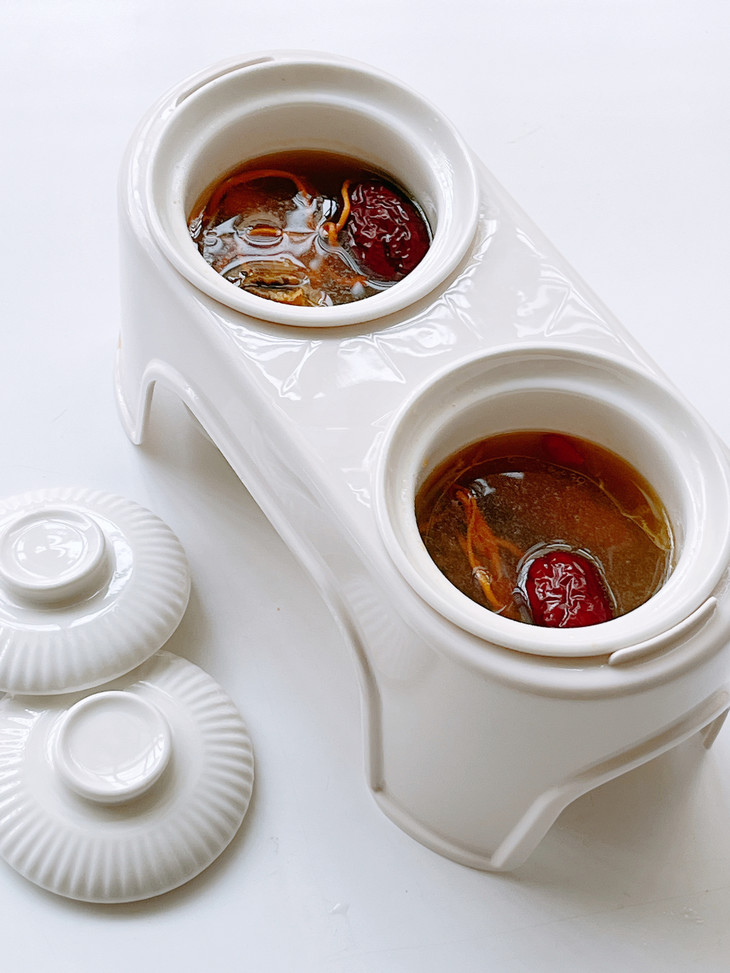 3、把炖盅放入蒸锅中选择“精炖模式”炖90分 钟,再将鲍鱼放入炖盅中继续炖10-20分钟。