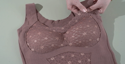 胸前的蕾丝由83.2锦纶+11.4%氨纶+5.4%聚酯纤维黄金组合面料组成,柔软不刺激。