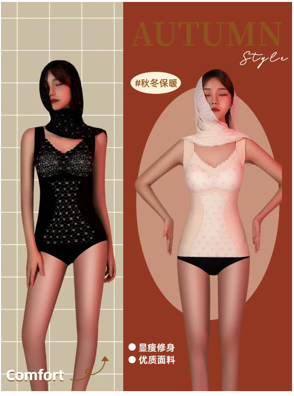 像这种蓄热保暖+自带bra蕾丝+修身版型的保暖背心,某宝随便一件就要200+!