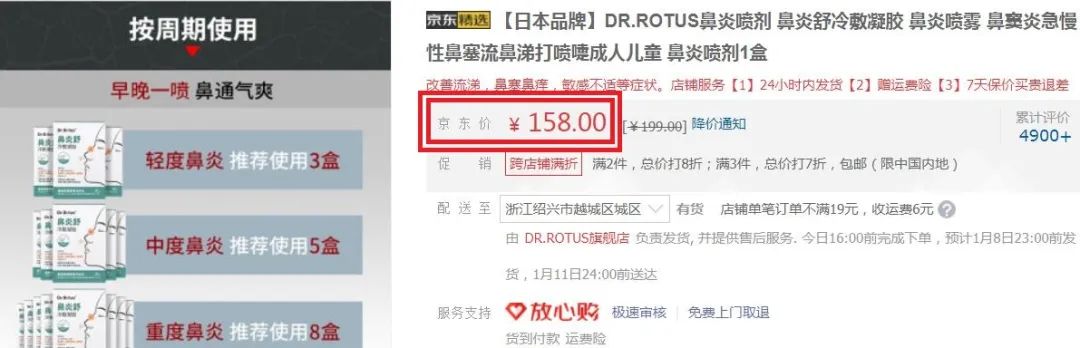 日本DR.ROTUS鼻炎舒冷敷凝胶,京东官方旗舰店售价158元/件。