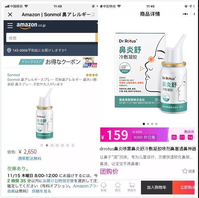 DR.ROTUS鼻炎舒喷雾,在日本的各大商场、药店、药妆店均有上架;日本的乐天官网、亚马逊电商等平台都在卖,就连国内的电商都在售卖,非常火爆。