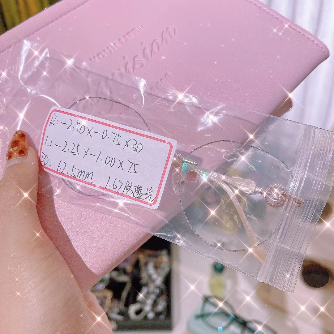 客配水晶切边钻石无框镜225/250度 +散光75/100度 1.67防蓝光镜片