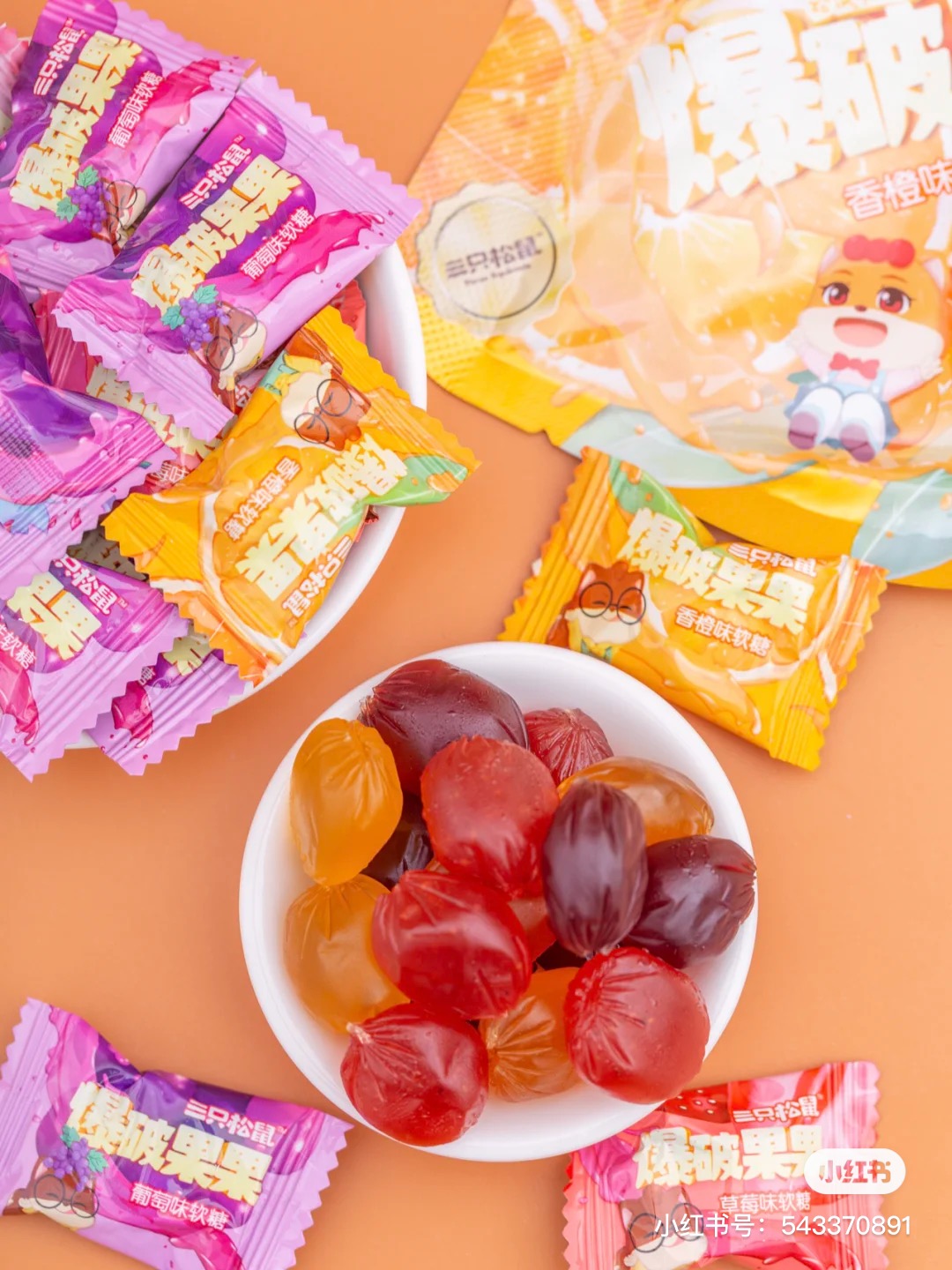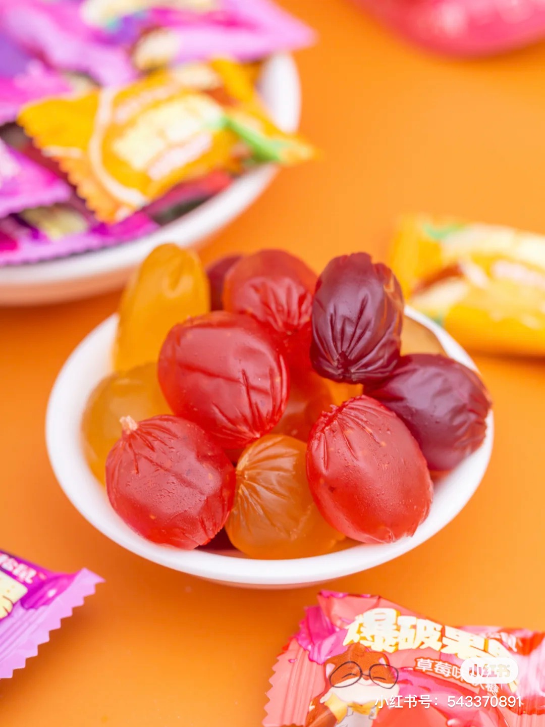 一层薄薄的膜衣包裏着果汁软糖,咬一口又Q又弹,还非常有嚼劲,真的会让你有种果汁在你嘴巴爆开的感觉💥