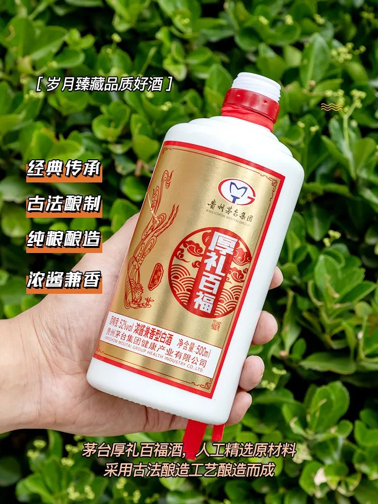 厚礼百福酒让人一喝难忘的原因,就在于既有浓香的甘爽微甜,回味又有酱香的丰满细腻,两种口感竟然还能格外协调,浑然一体。