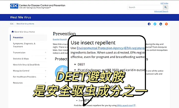 美国疾*病控制与预防中*心(CDC)曾在防*治西尼罗河病*毒的专题中推荐了6种安全有*效的驱蚊成分,其中之一就是避蚊胺