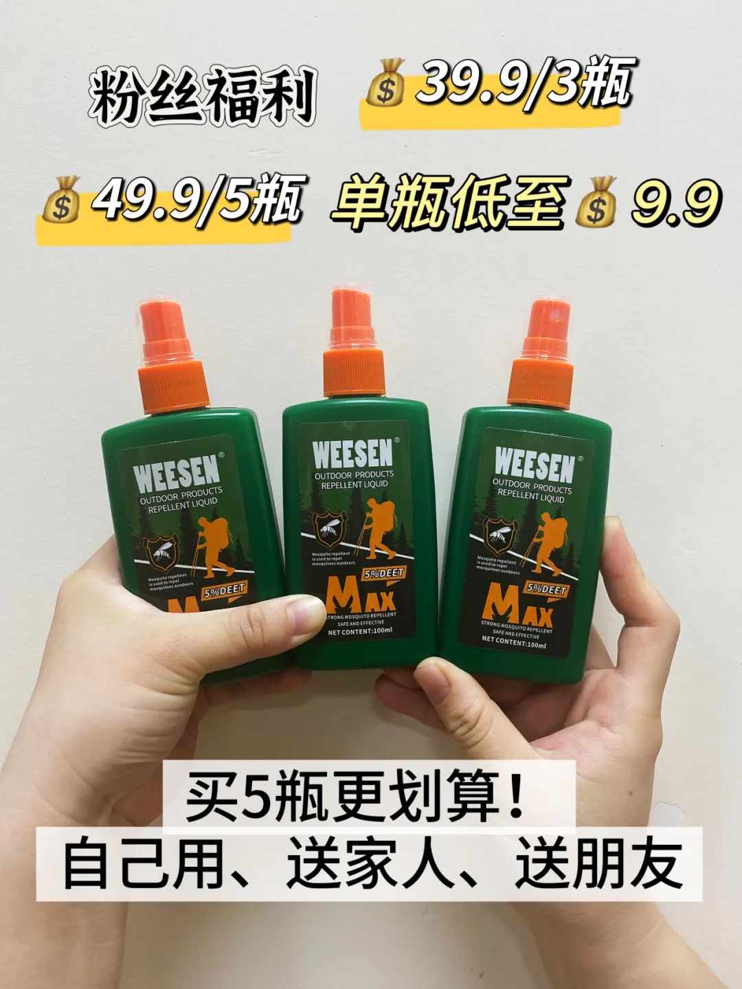 我们选品团队把市面上的产品挨个试用了一遍,千挑万选,给家人们选出了【WEESEN韦森驱蚊花露水】