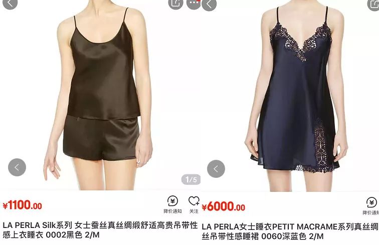 大家熟知的L牌,一套短裤+吊带真丝睡衣,1100+,而真丝睡裙一般都是好几千的价格。