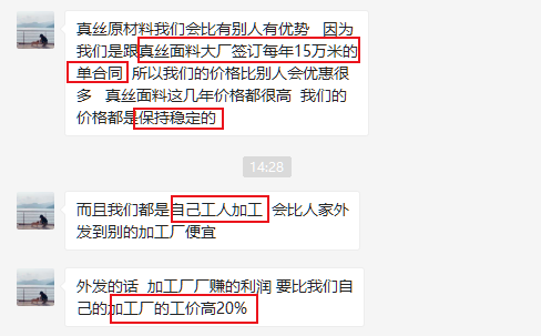 大家可能不知道,很多真丝品牌都是小批量采购真丝,再交给代工厂加工,成本确实不低,再加上营销费用,确实没有千元做不下来。