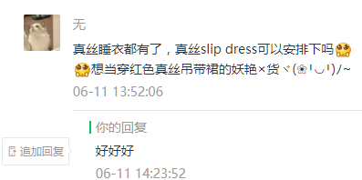 有说终于等到你的,有说想要真丝吊带裙的,有说能不能开团长款,甚至细到,想要短袖+长裤的...